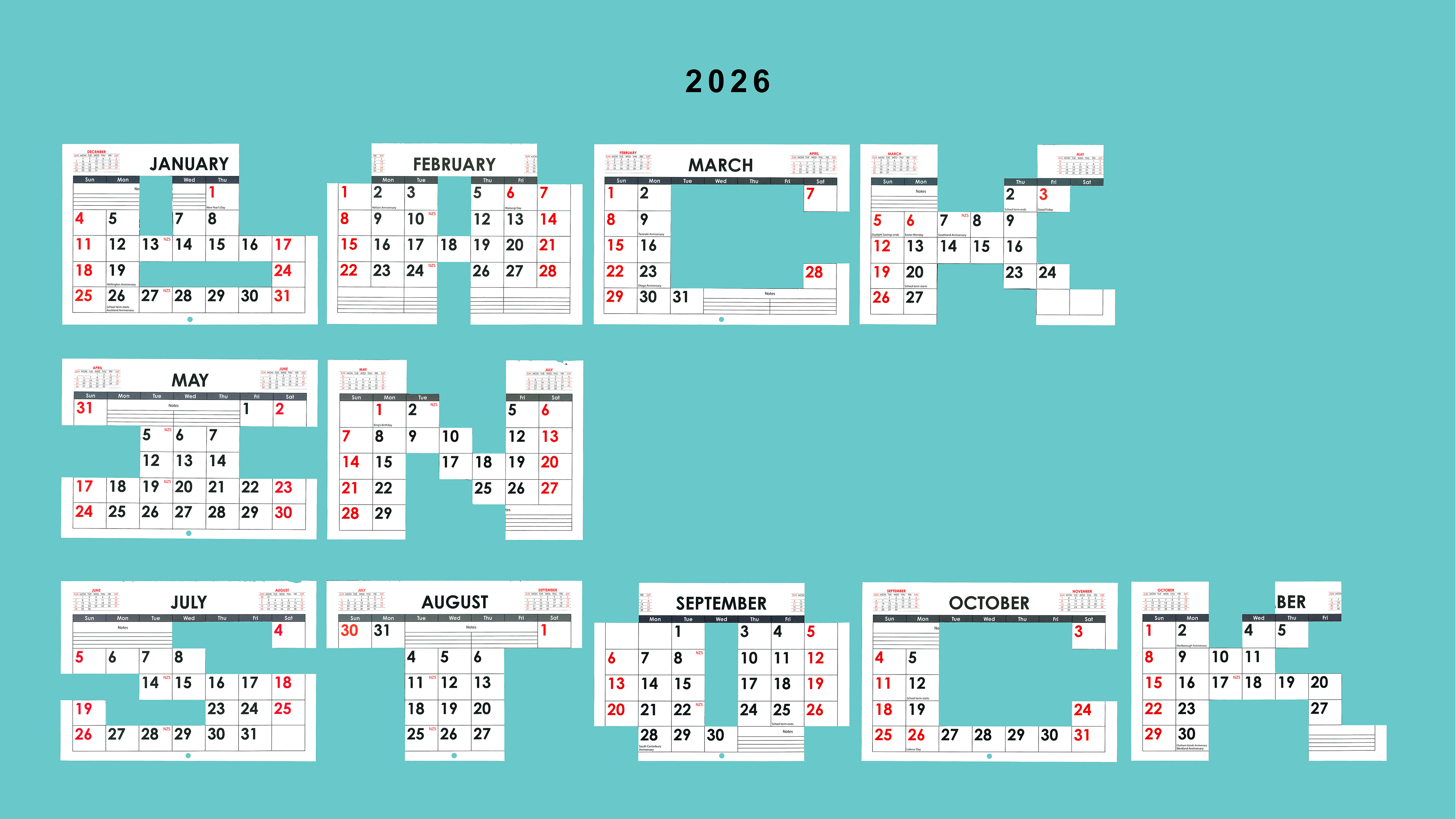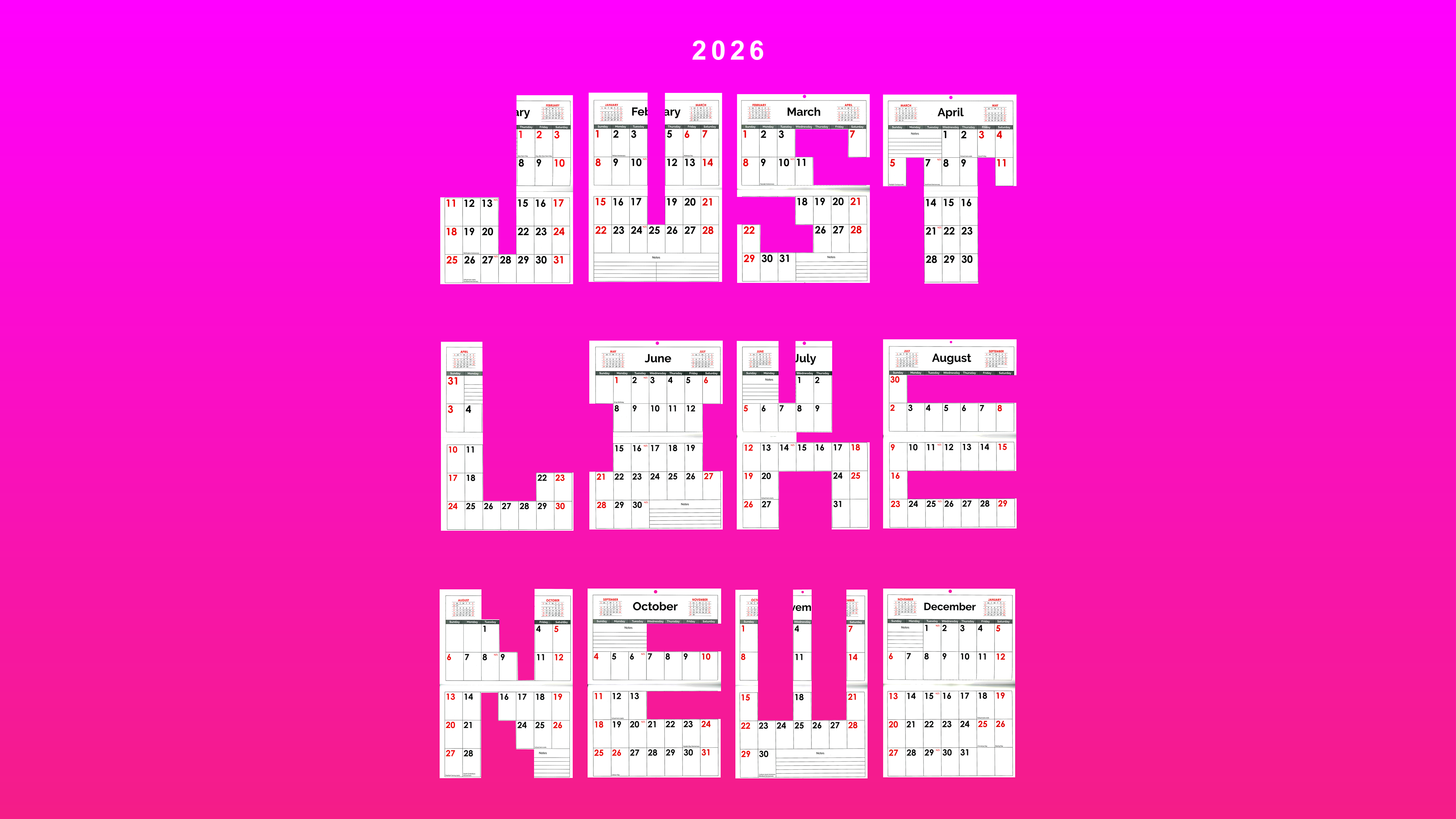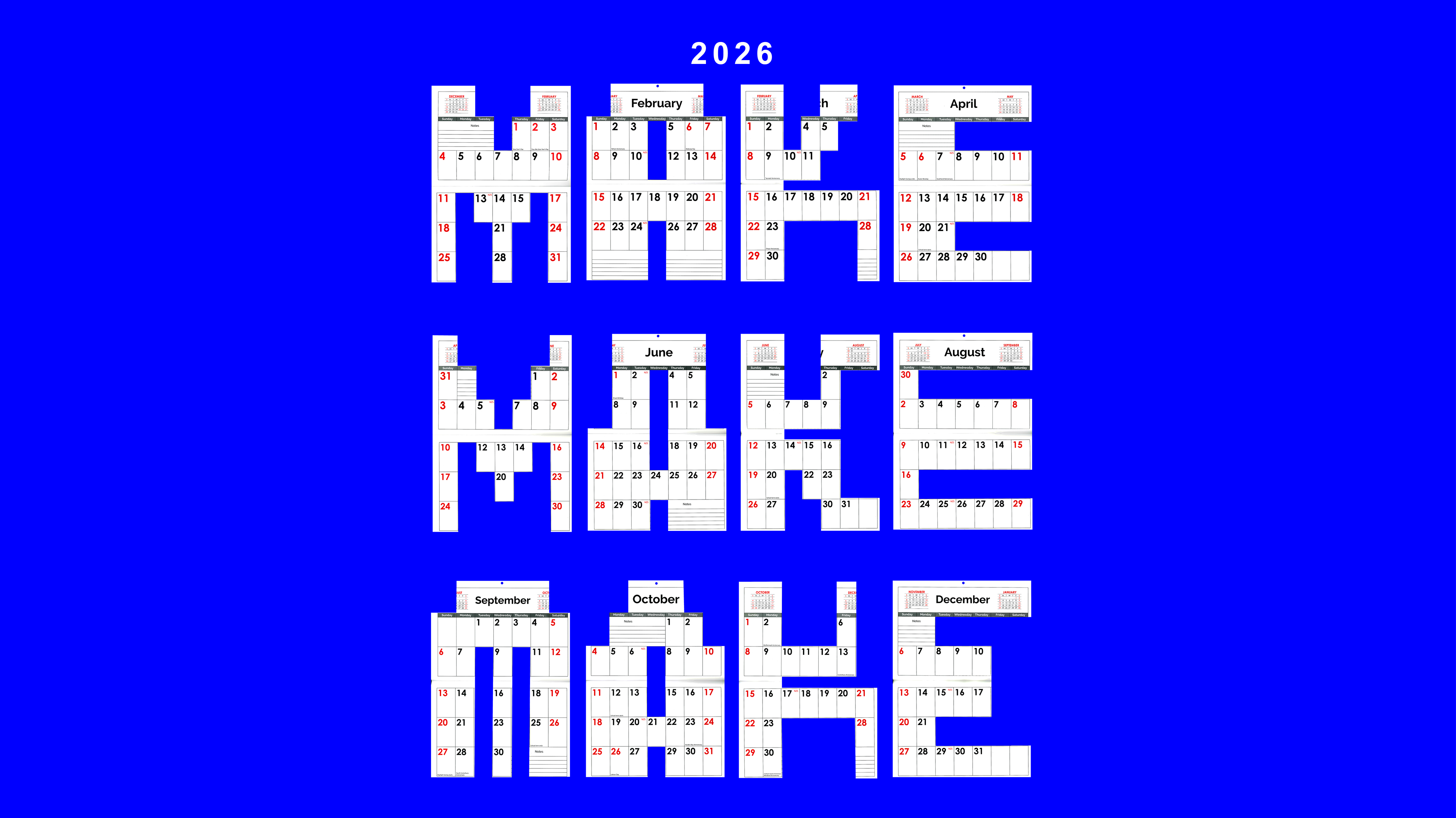 For this series, I used the 12 months of a calendar to define a strict 12-letter headline limit. I developed these blocky, structural letters to stay true to the calendar's grid and DNA, but within that single grid, I discovered a huge variety of ways to build each character. It proves that a rigid system doesn't have to be repetitive. For me, 2026 is all about that challenge: MAKE MAKE MAKE.