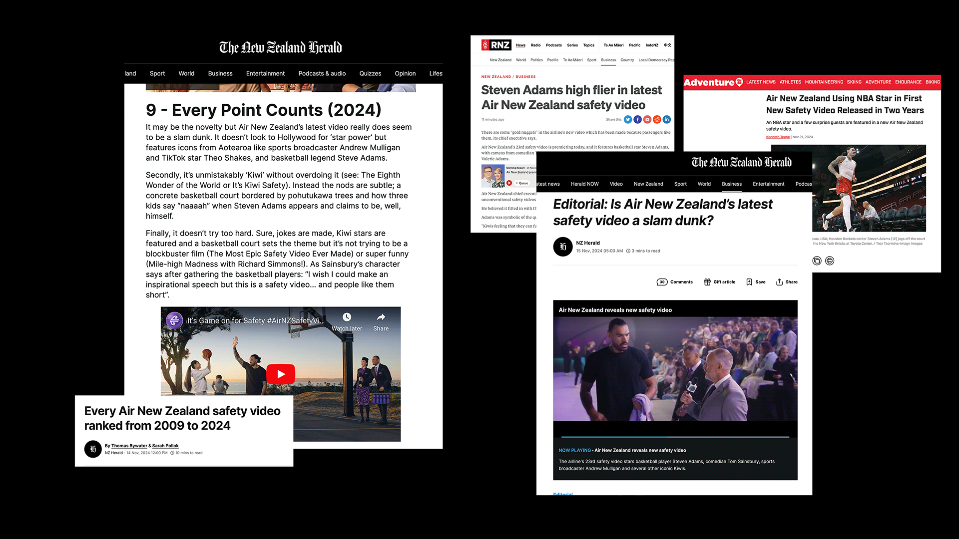 That really is Steven Adams helping us make the most popular safety video ever for Air New Zealand.